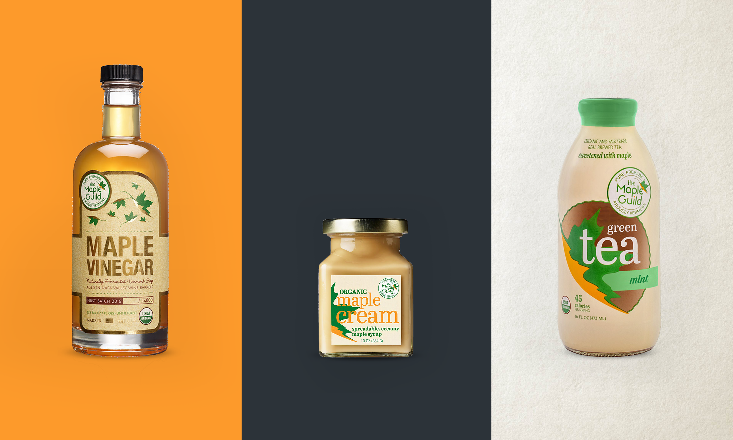 Launched in 2016, The Maple Guild is one of the largest single-source producers of organic maple syrup in the world. The versatility of pure maple is showcased in a variety of products: syrups, cream, vinegar, and more. We developed an extensive brand that celebrated the foundational flavor while giving each product a premium feel.